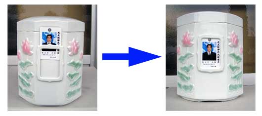 『天竺の壺』は、従来の骨壷にはない写真を直接骨壷に差込む事が出来るようになっているので、ハッキリと明示する事が出来る骨壷です。
